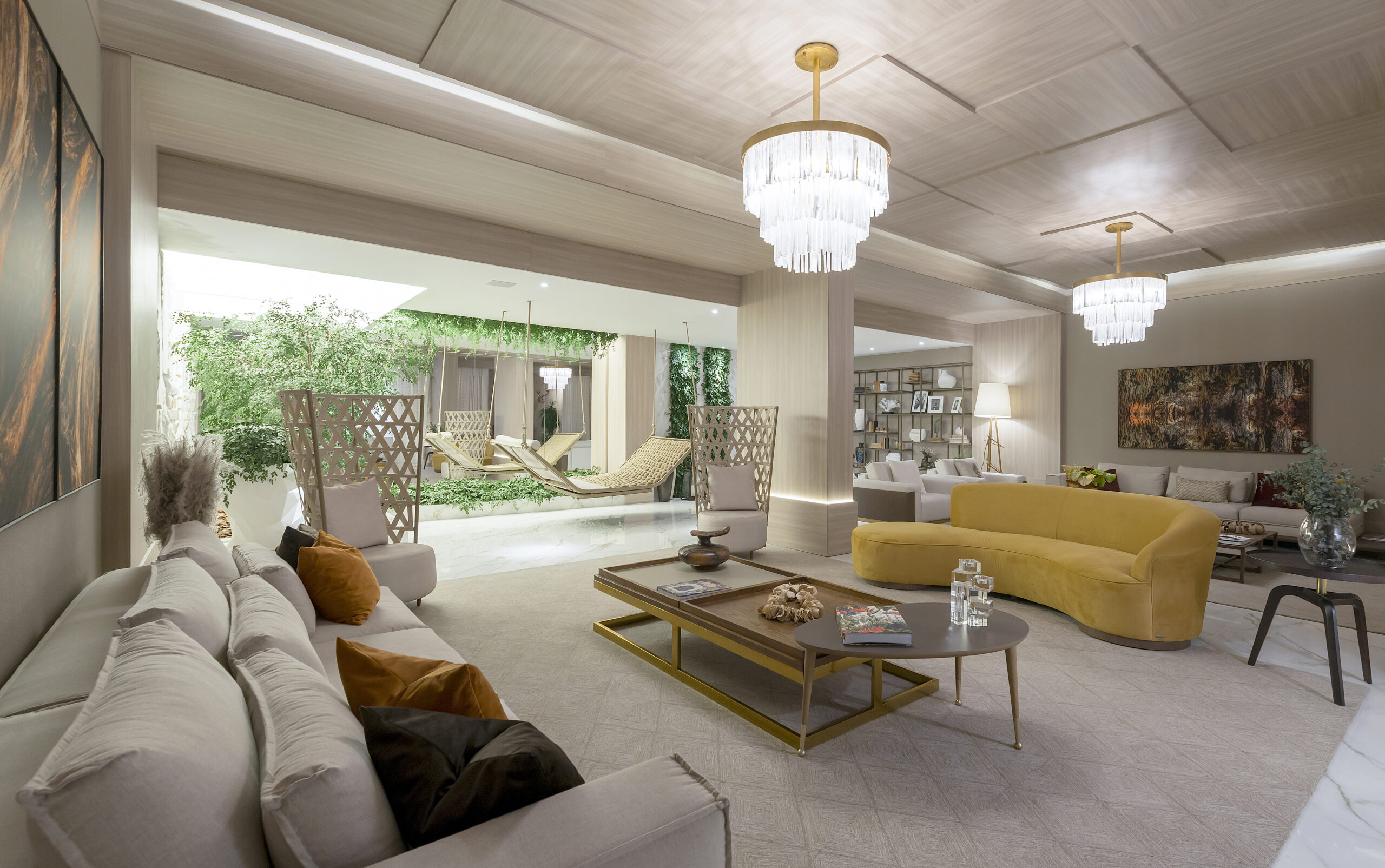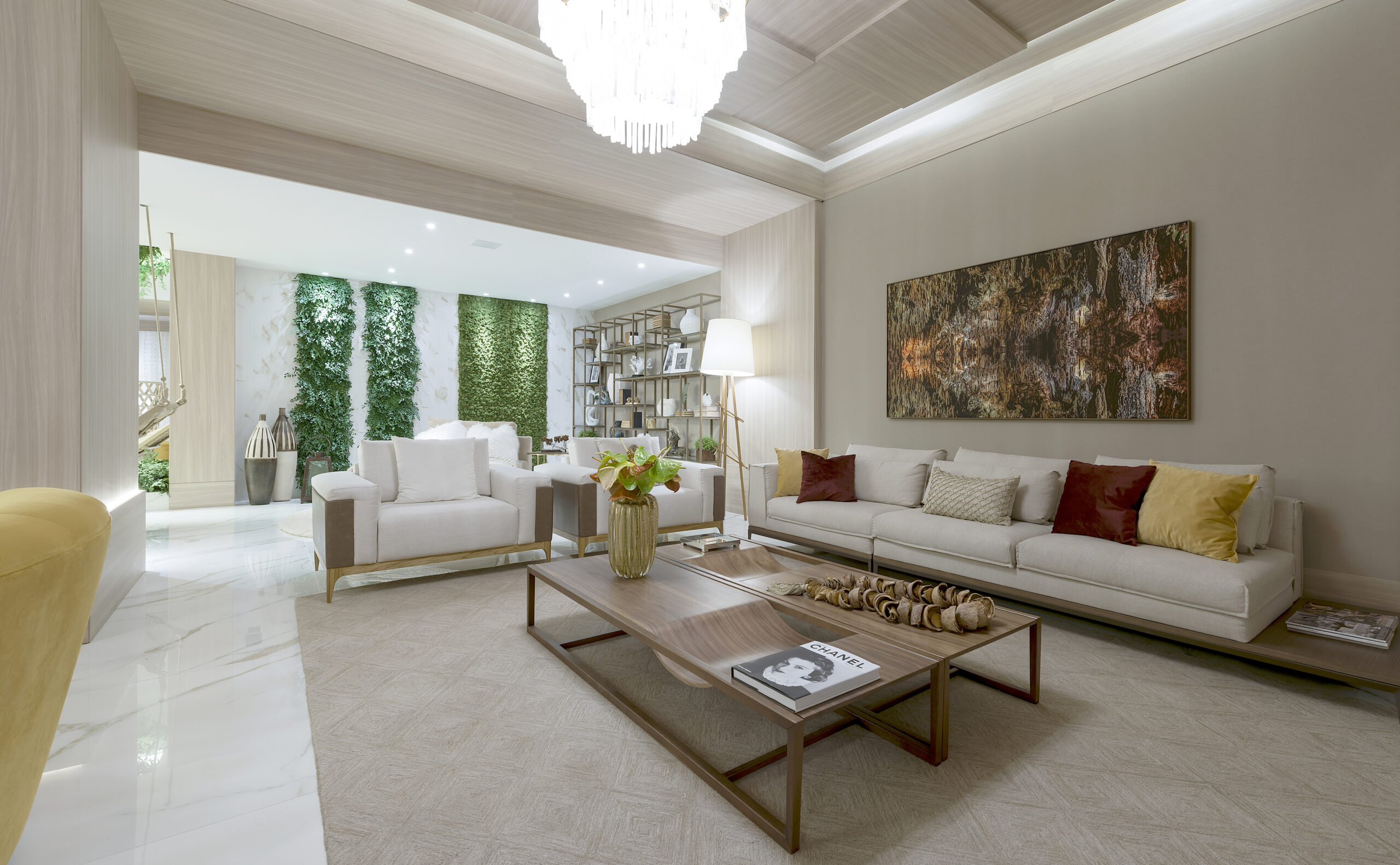 O design brasileiro igualmente está valorizado no Living Paradise, entre as peças, está a sofisticada luminária Casablanca, com pedras marroquinas, desenhada pela arquiteta Marcele Muraro; a poltrona Moon, do estúdio Asa Design; o balanço Arrebol, da arquiteta e designer Natalia Scarpati, e a poltrona Toscana, do designer Rodrigo Karan. O mobiliário foi escolhido para trazer elegância ao espaço como a escolha do sofá curvo no tom amarelo ouro, contrastando com os tons neutro dos pisos e revestimentos e o verde do jardim. “Criamos uma atmosfera perfeita para vários momentos, como ler um livro, escutar música, tomar um vinho junto a lareira e receber os amigos”, finaliza Marisa Lebarbechon, que está em sua sexta participação na mostra catarinense.