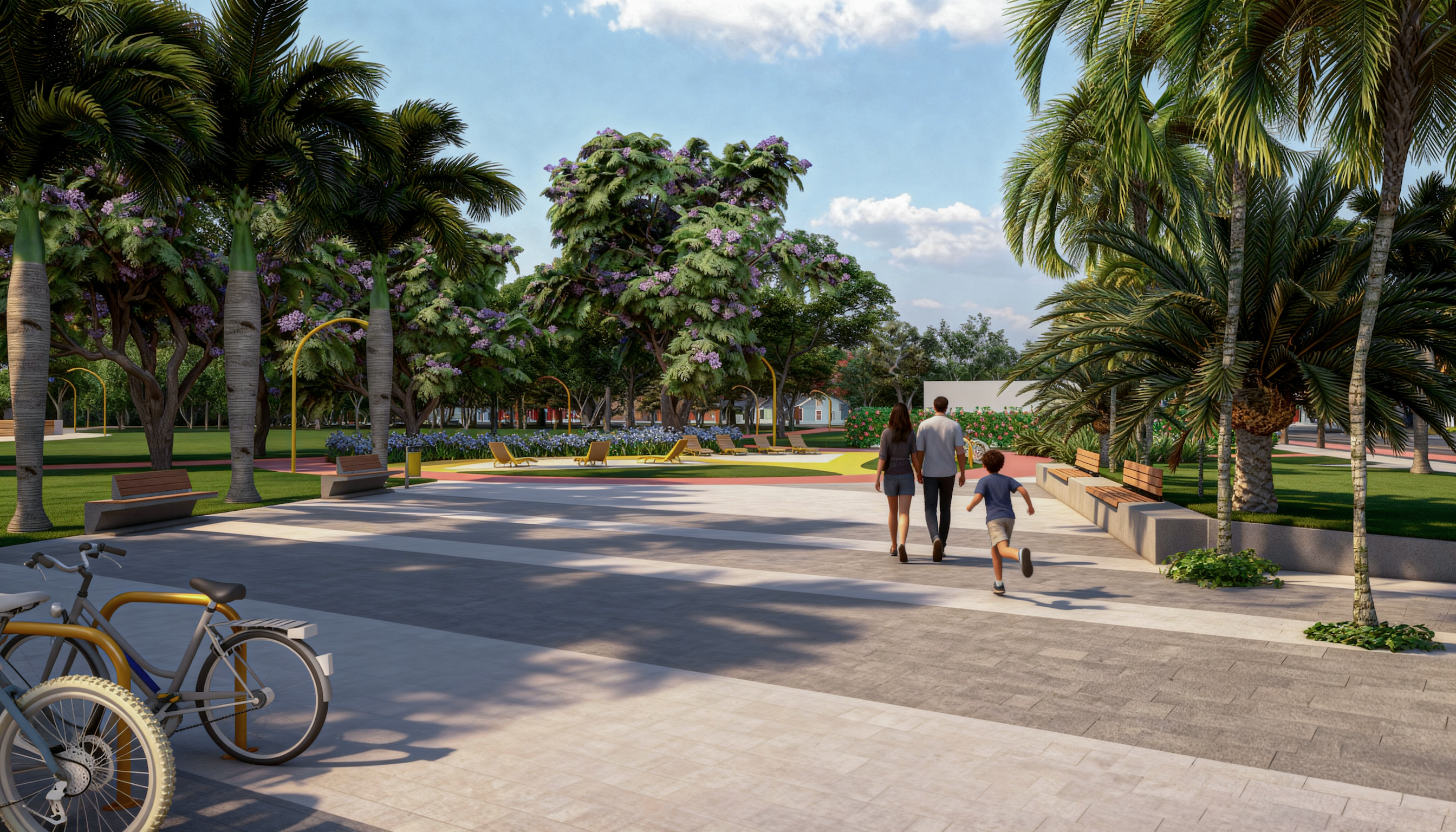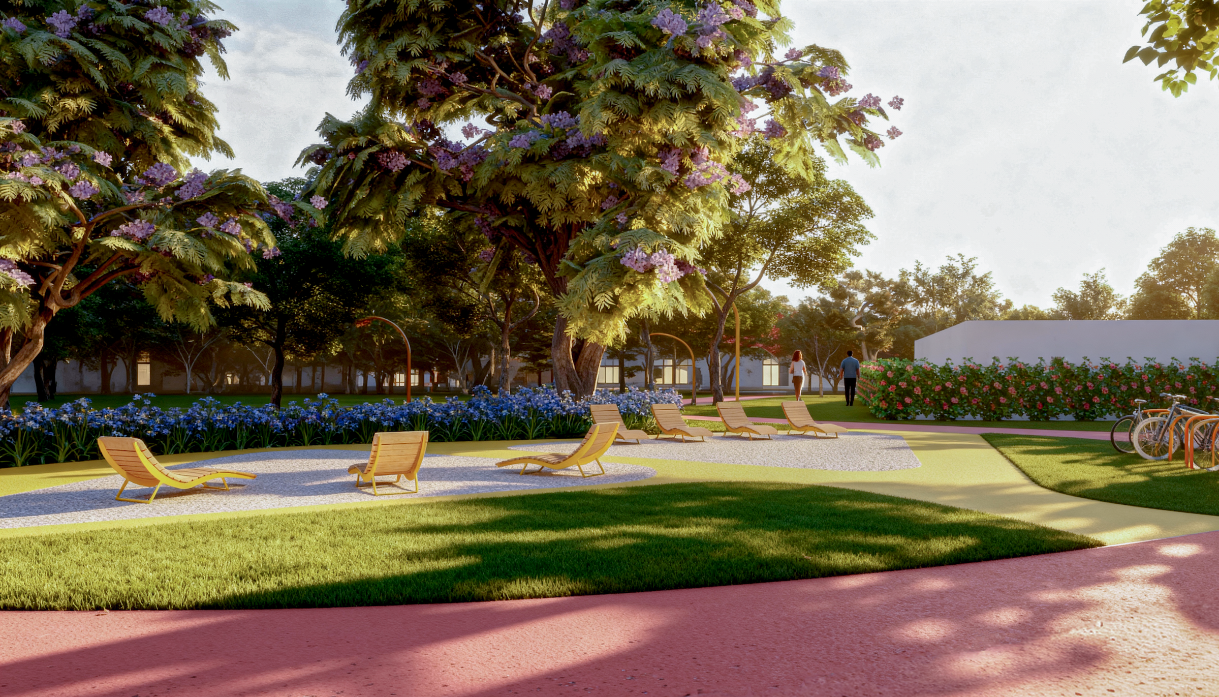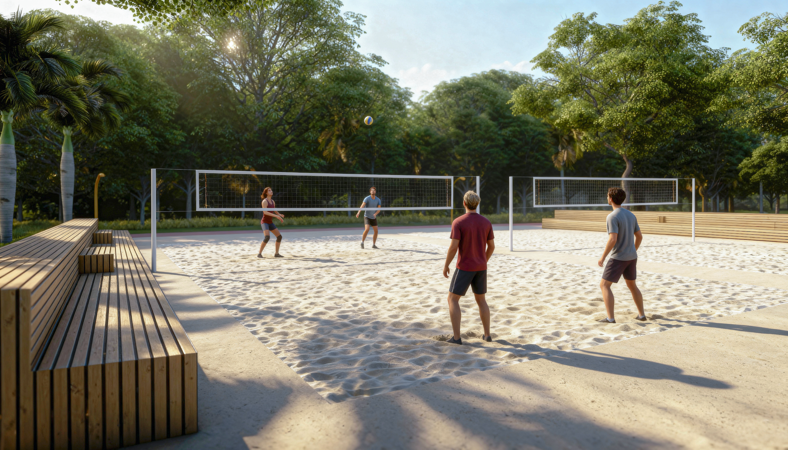 Experiência do Usuário e Benefícios: Projetado sob a ótica do neurodesign e da escala humana, Quinta da Luz III oferece uma experiência sensorial completa. A combinação de esforço físico, interações sociais e contato visual com a natureza estimula positivamente os sentidos e a mente. Um morador pode iniciar o dia correndo na pista, cercado pelo canto de pássaros nas copas nativas, e ao final do percurso alongar-se em uma praça sombreada. Famílias encontram no playground de aventura uma oportunidade de desconexão dos eletrônicos, permitindo que as crianças desenvolvam confiança ao transpor obstáculos de madeira e corda com toda a segurança. Para os amantes de esportes, as quadras de beach tennis não são apenas espaços de jogo, mas pontos de encontro comunitário – à tarde é comum ver vizinhos formando duplas descontraídas e torcida se reunindo em volta, fortalecendo laços de convivência. Convivência aliás é a palavra-chave: o parque foi concebido para ser um hub social ao ar livre, onde diferentes gerações e perfis de usuário se cruzam. Ciclistas utilizando os bicicletários, idosos caminhando em trilhas acessíveis, jovens treinando funcional ao ar livre, donos de pets usufruindo das áreas gramadas – todos encontram seu lugar. Essa diversidade de usos simultâneos reflete o compromisso do Studio Arcadia em criar espaços inclusivos e democráticos, que atendem às necessidades de lazer de toda a comunidade.