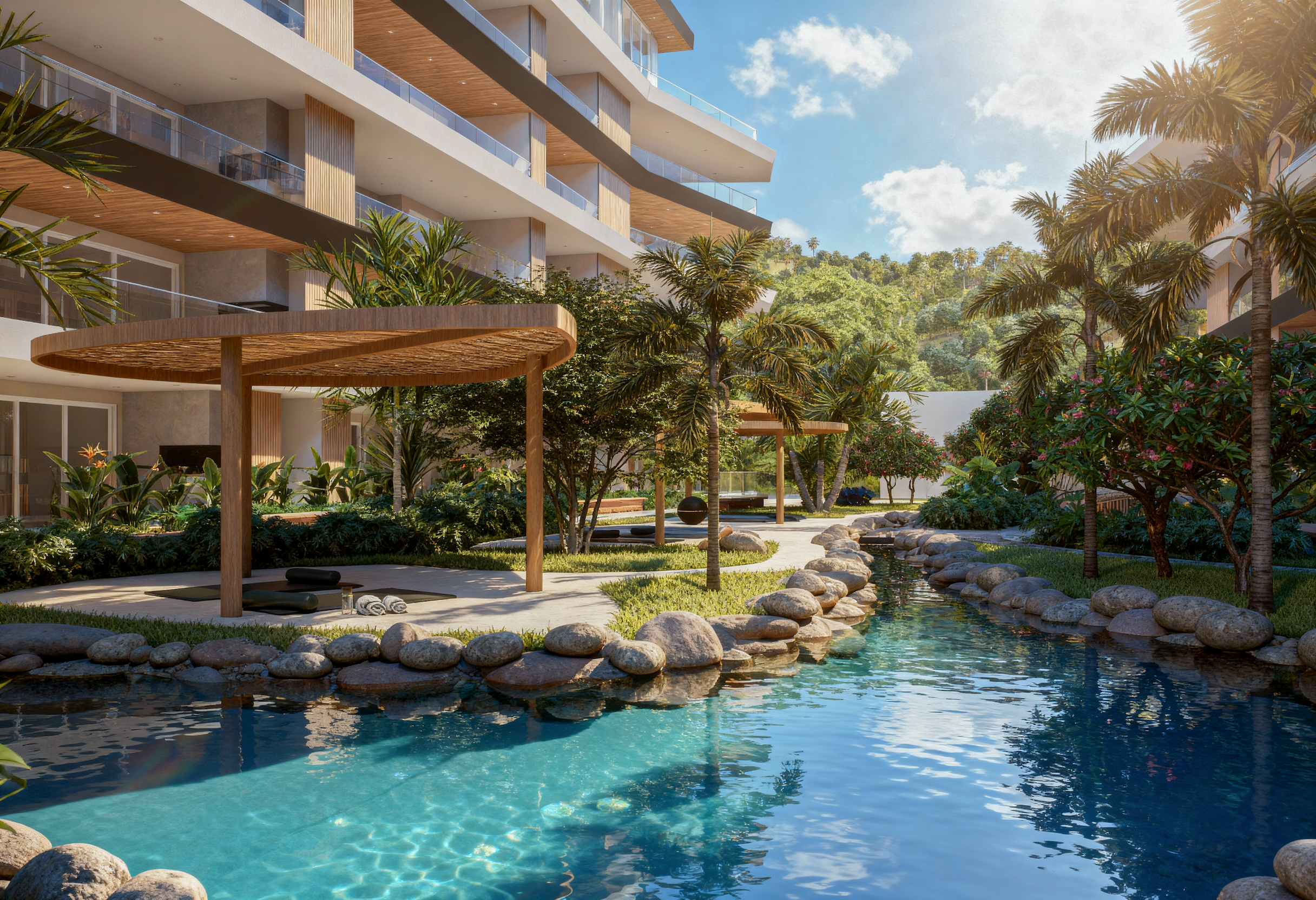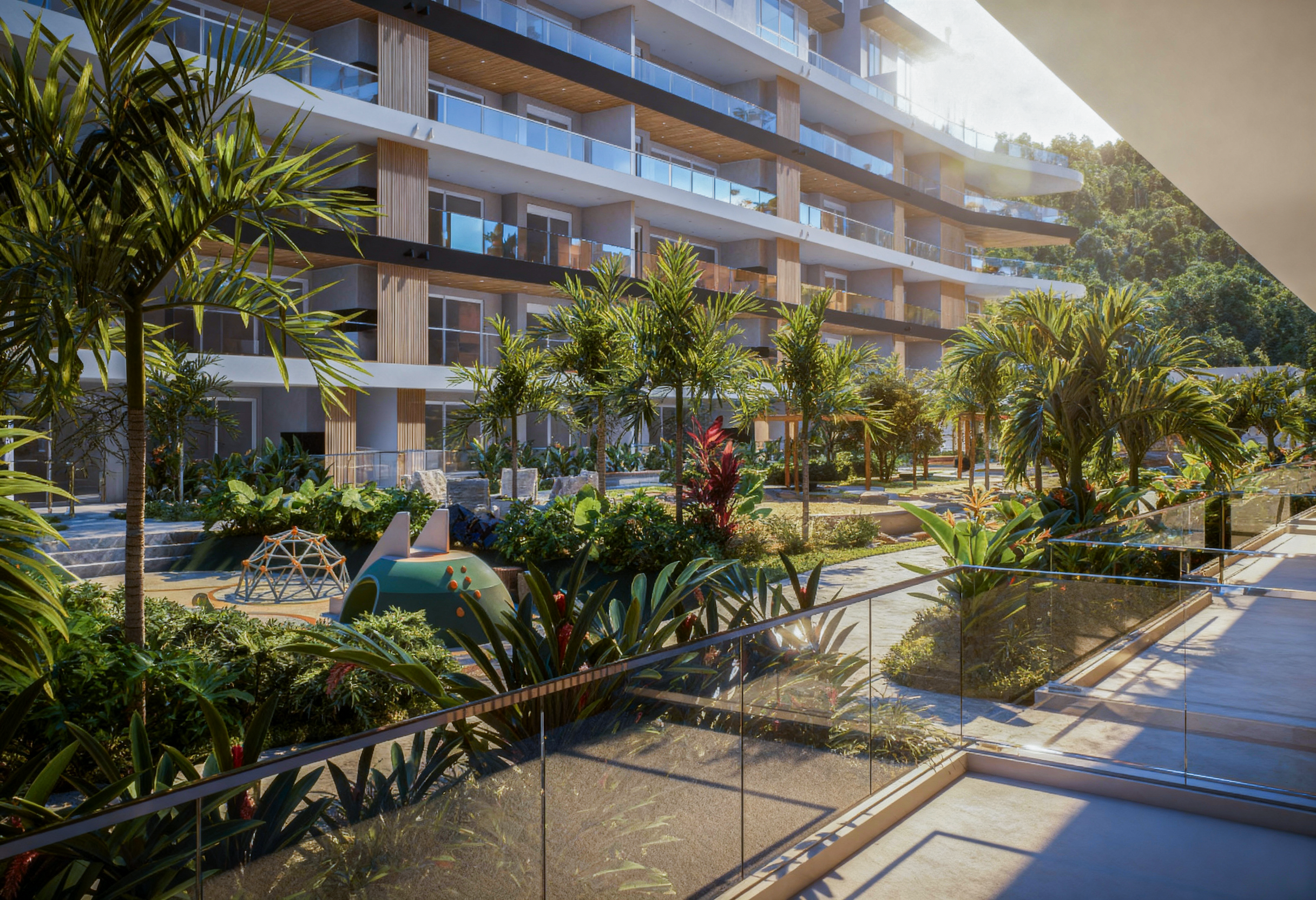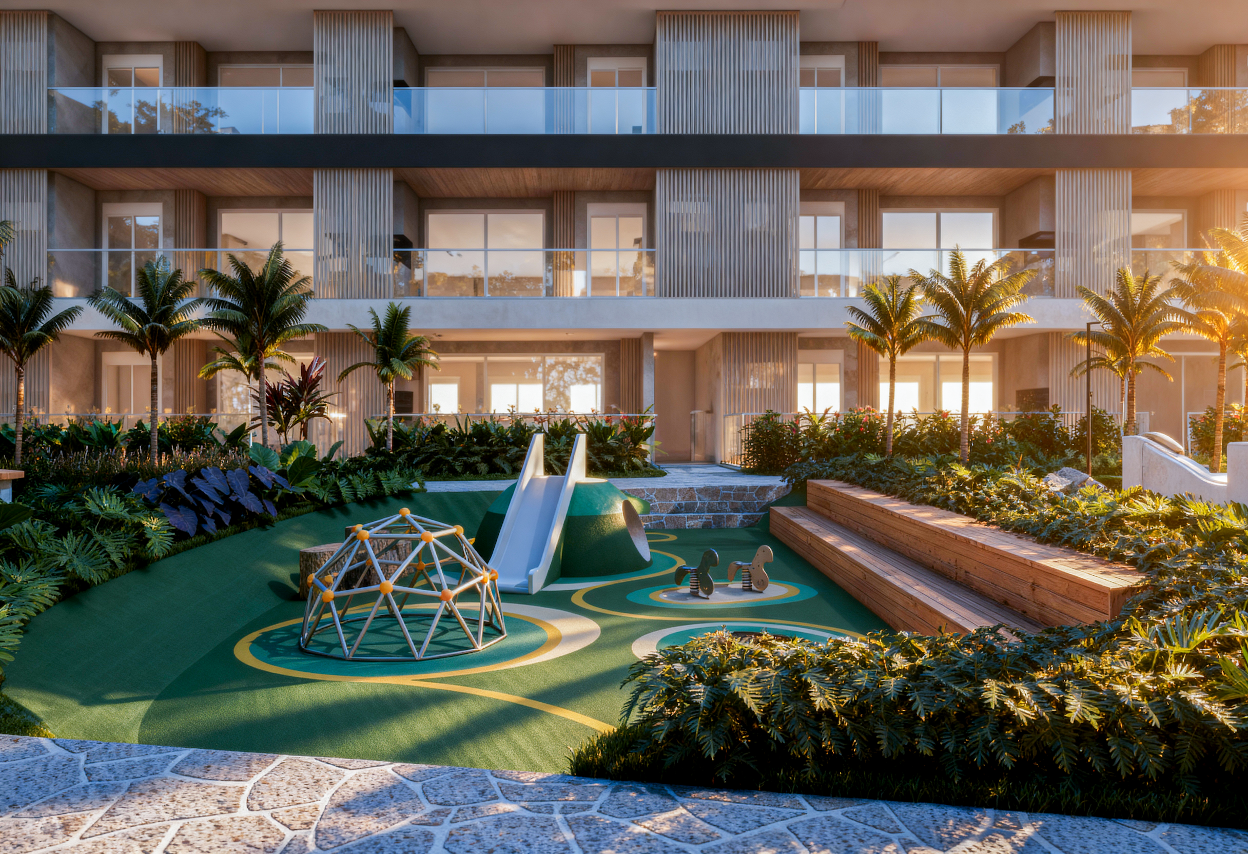 No Projeto Azzure, o paisagismo foi concebido como parte essencial da experiência do empreendimento.