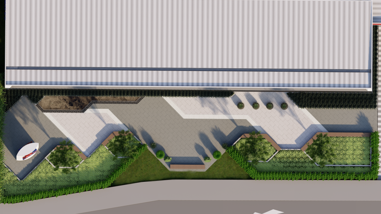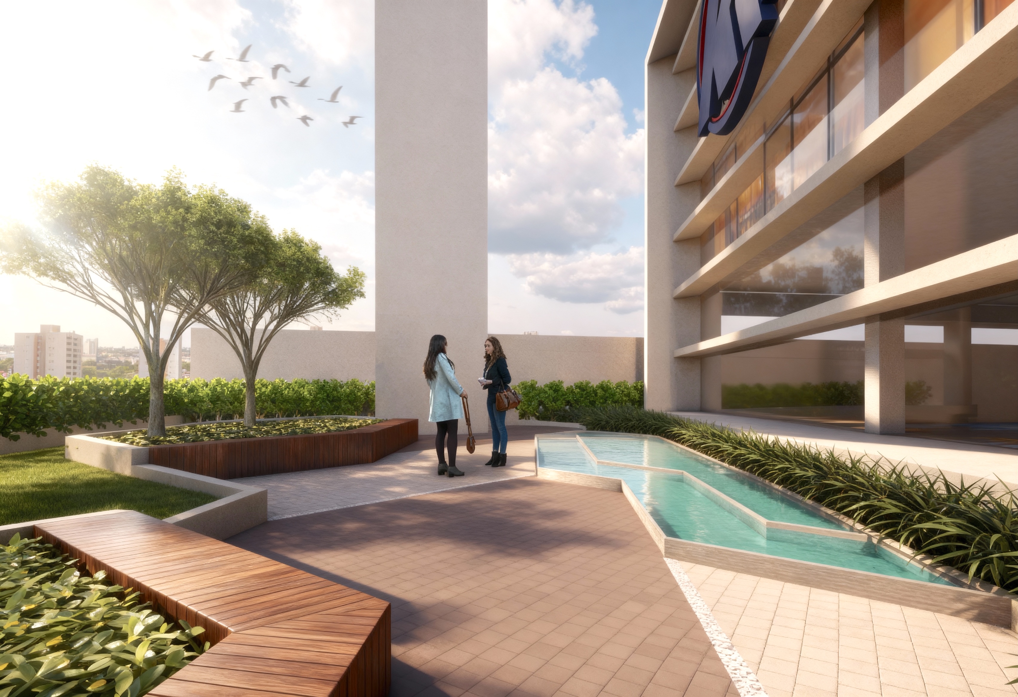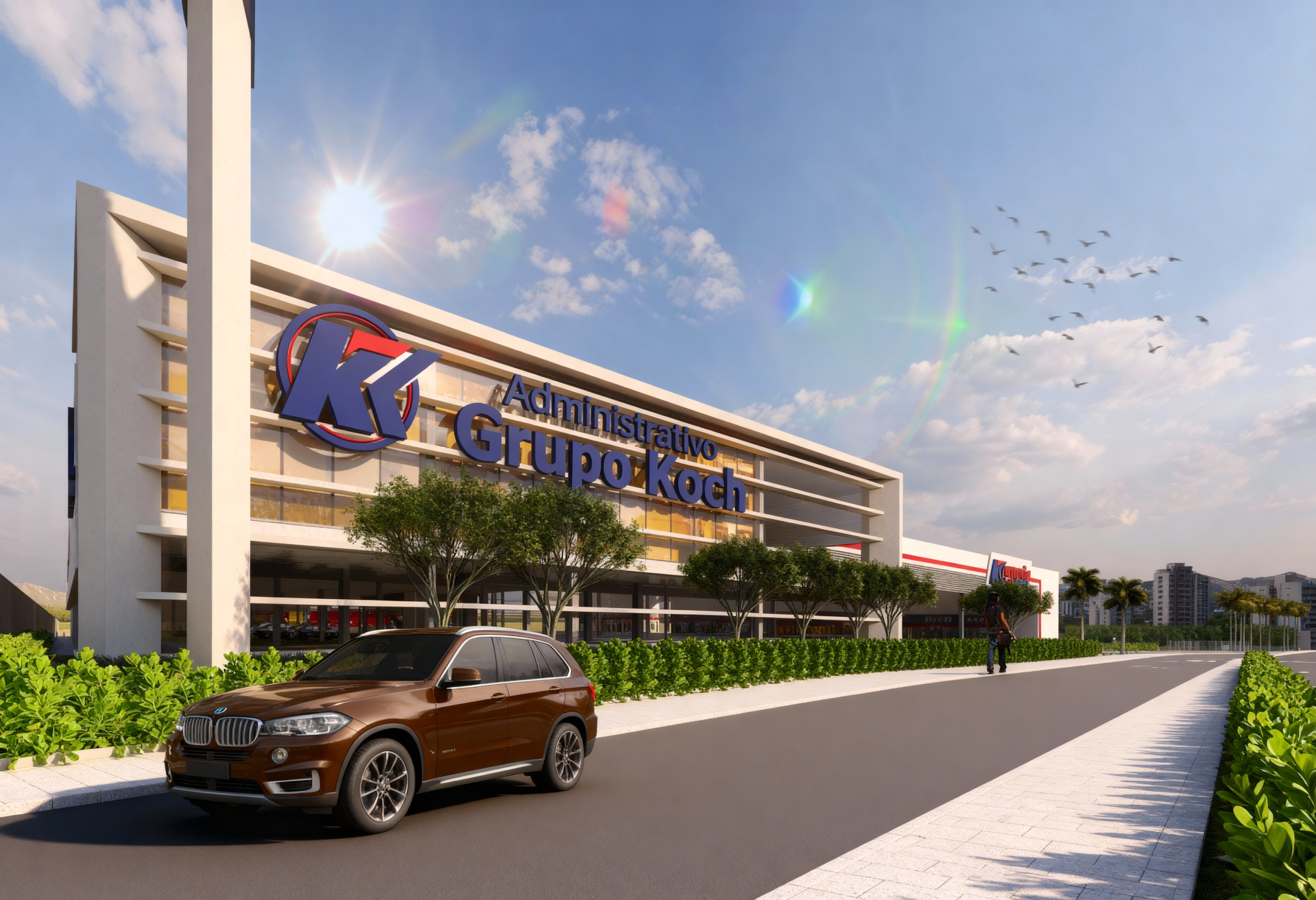 Neste projeto para a sede administrativa da Rede Koch, a arquitetura paisagística foi utilizada como ferramenta para aproximar as pessoas da natureza e criar interação harmoniosa entre as edificações e o espaço urbano. Orientado por princípios de biofilia, o projeto resultou na criação de uma nova praça pública — um ambiente de convivência que oferece momentos de descanso tanto para os usuários do mercado quanto para os funcionários.
