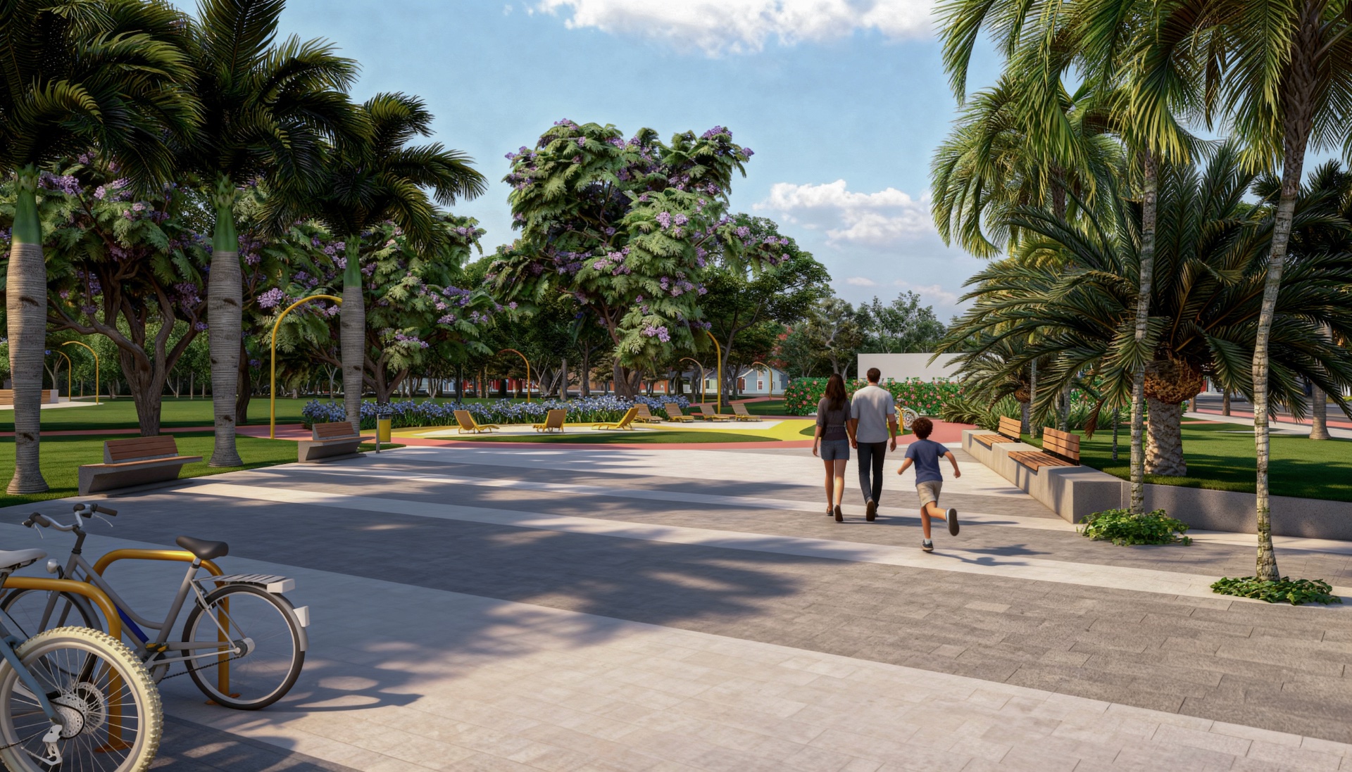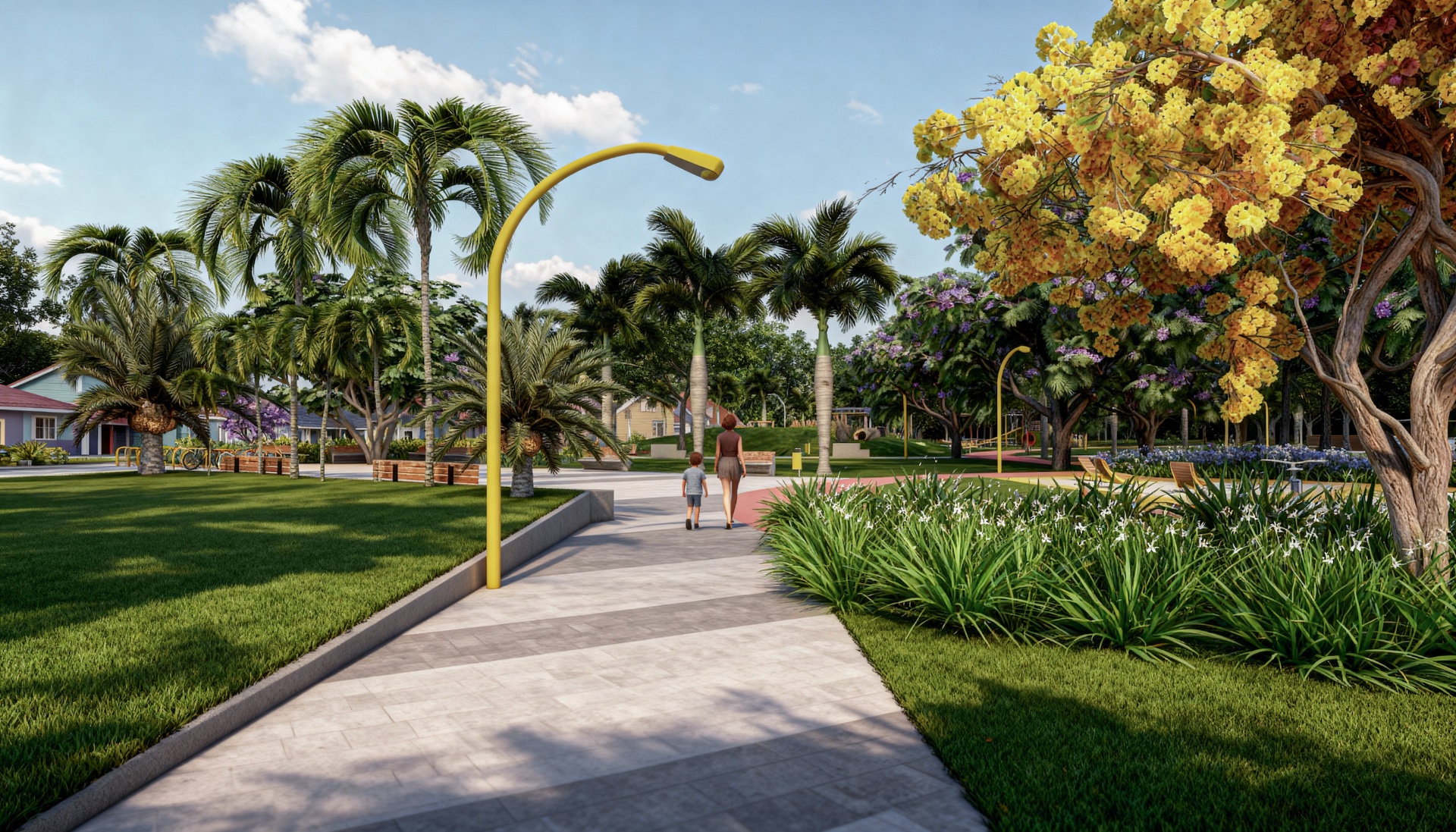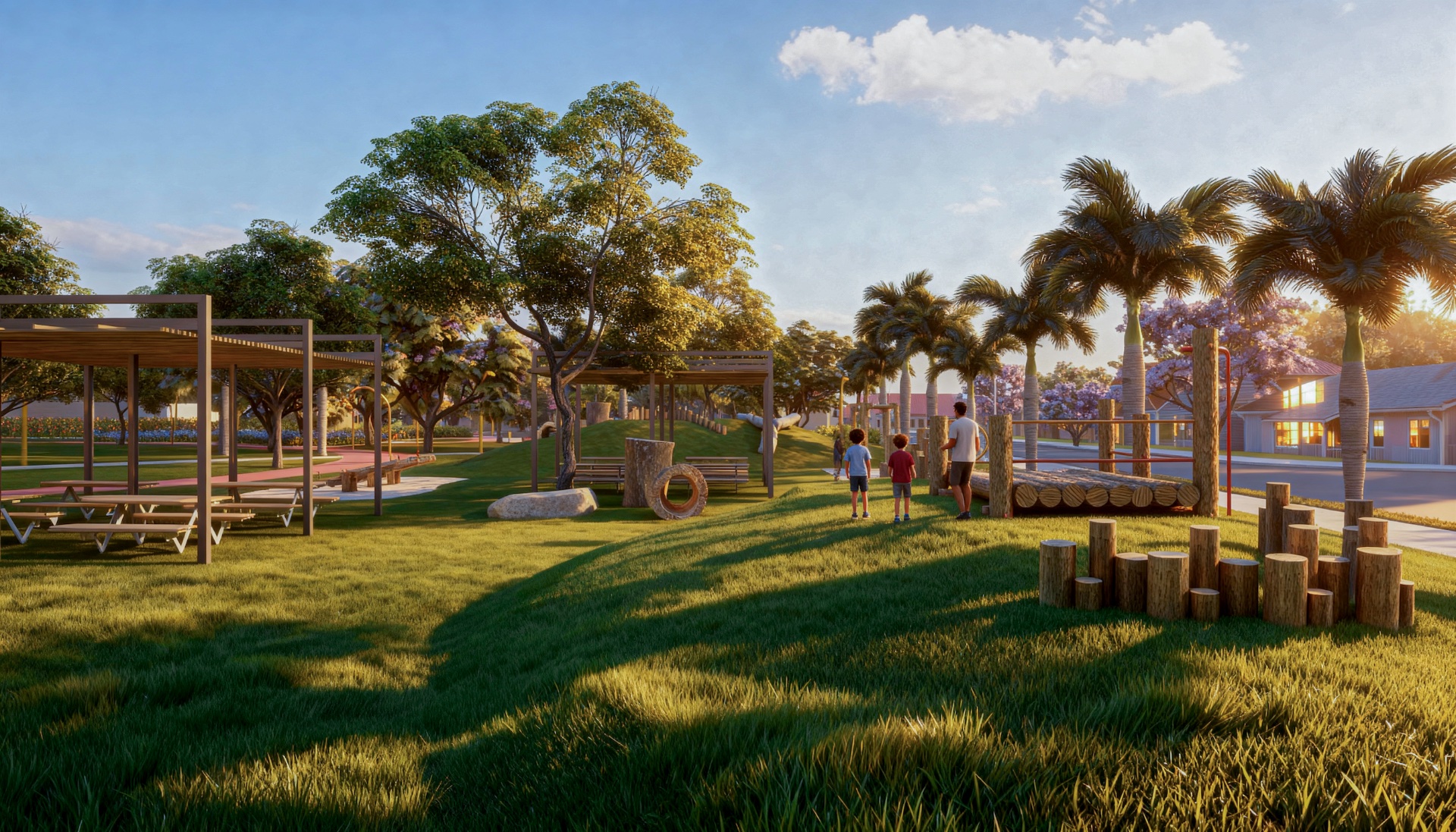 Com mais de 20.000 m² distribuídos em três áreas distintas, o loteamento Quinta da Luz expressa seu compromisso com o bem-estar dos moradores em cada etapa do projeto. A terceira parte do conjunto amplia essa proposta ao criar um parque voltado ao esporte e ao contato direto com a natureza, oferecendo oportunidades qualificadas de lazer e atividade física. Com um desenho mais natural e orgânico, o espaço reúne quadras de beach tennis, pista de corrida e um playground aventura, configurando ambientes dinâmicos que estimulam movimento e convivência. A vegetação nativa é um dos elementos centrais, contribuindo para manter o parque fresco, agradável e acolhedor, além de reforçar o caráter sustentável e regional do projeto.