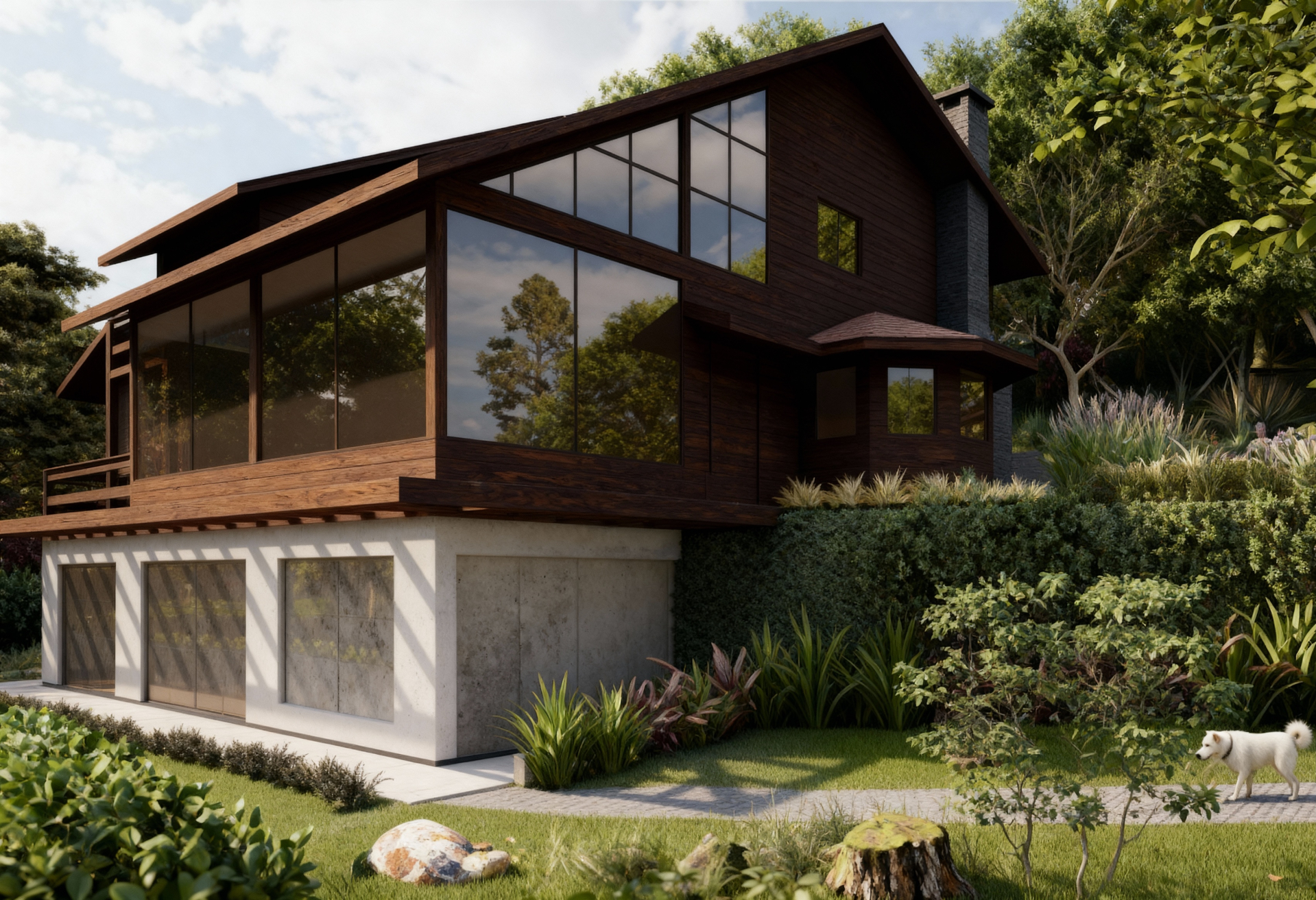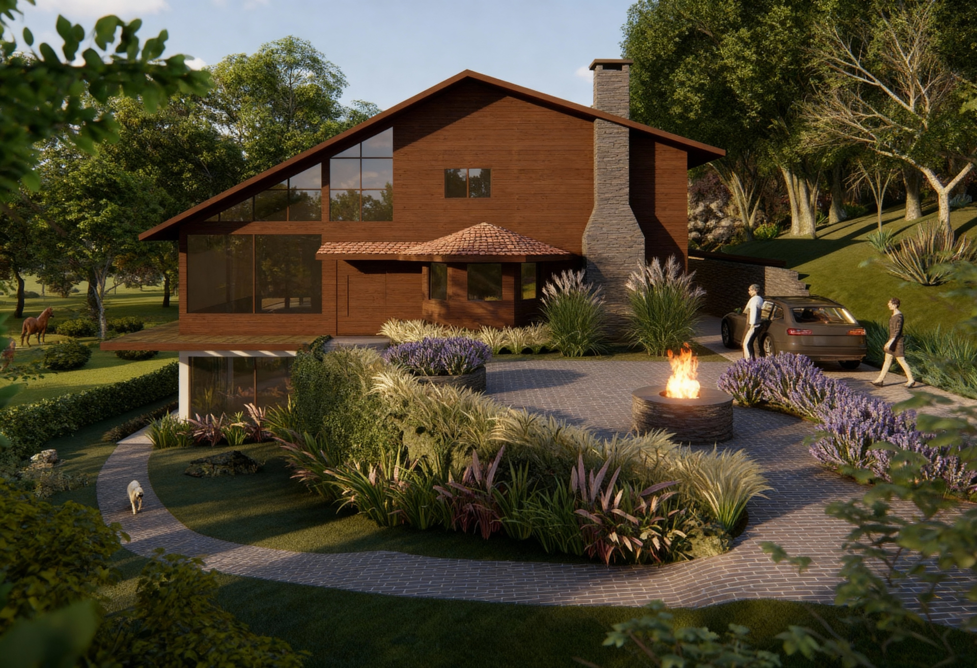 Nesta casa na Serra Catarinense, o paisagismo foi pensado para criar um ambiente externo aconchegante, ideal para receber amigos, apreciar um vinho, acender a lareira nos dias mais frios e contemplar a paisagem privilegiada do entorno. A seleção de vegetações adequadas à região garante harmonia com o contexto natural e baixa manutenção, enquanto o uso de pedras naturais nos pisos e caminhos reforça a autenticidade rural e a integração com o terreno. Para os mobiliários, optamos pela madeira, adicionando calor e textura ao espaço. O conjunto resulta em um ambiente convidativo, funcional e sensível ao lugar, onde natureza e convivência se unem com naturalidade.
