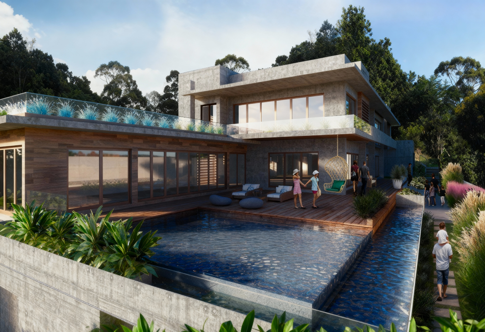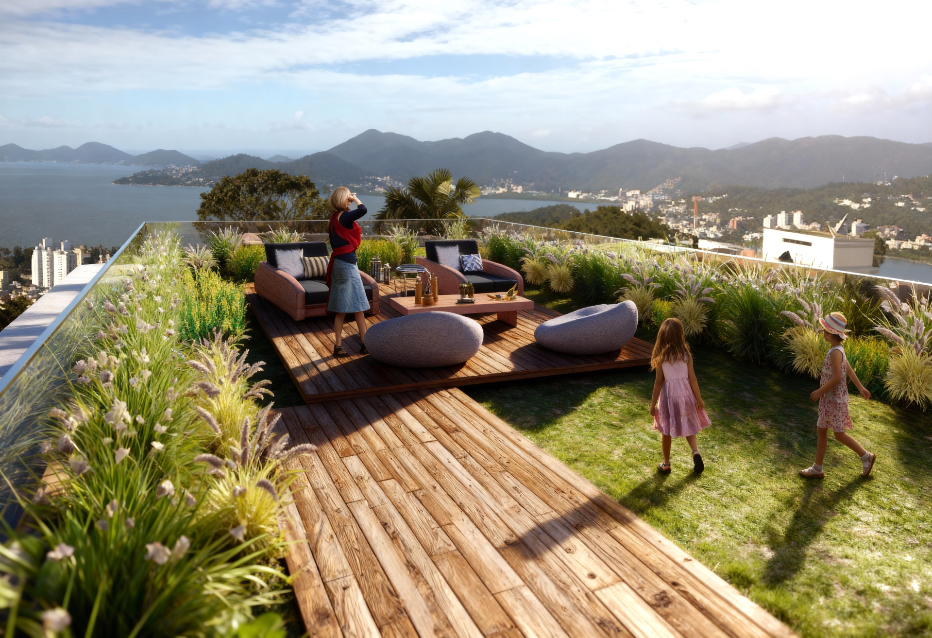 O paisagismo da Residência Vistas, em Florianópolis, foi concebido para valorizar a integração entre arquitetura e natureza, explorando ao máximo as visuais privilegiadas do entorno. Jardins lineares acompanham os percursos externos, combinando espécies de textura leve com floríferas que trazem movimento e cor, criando uma transição suave entre a edificação e a mata adjacente. Nos terraços superiores, o projeto transforma a cobertura em um mirante contemporâneo, onde gramados, maciços vegetais e decks de madeira estruturam áreas de contemplação voltadas para o mar e a paisagem urbana. Já na área da piscina, o paisagismo adensa o perímetro com composições tropicais que garantem privacidade e reforçam o caráter acolhedor do espaço, enquanto a lâmina d’água se conecta visualmente ao horizonte. Elementos como vasos esculturais, espelhos d’água e caminhos em pedra complementam a experiência, criando pontos de interesse e promovendo fluidez entre os ambientes. O conjunto resulta em uma residência que celebra o contato com a natureza e transforma cada percurso em um convite à contemplação.